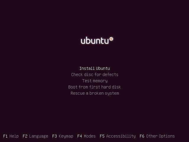 Pilihan Bahasa saat Instal Ubuntu - Setelah memilih bahasa yang digunakan, maka akan muncul tampilan yang berisi beberapa opsi. Pilih Install Ubuntu untuk memulai proses instalasi. Namun jika ingin memperbaiki Linux yang sudah ada tetapi rusak maka pilih rescue a broken system.
